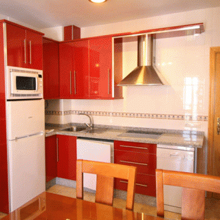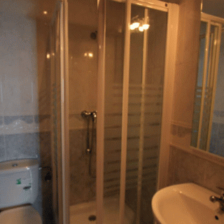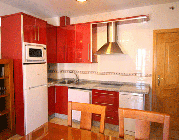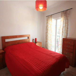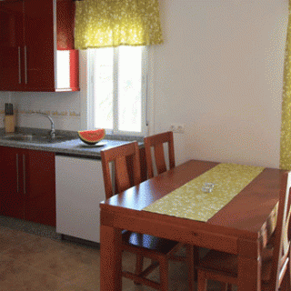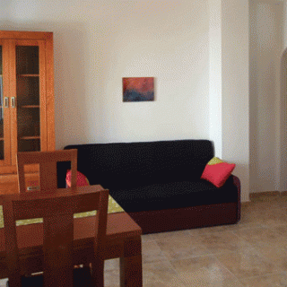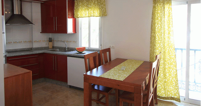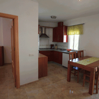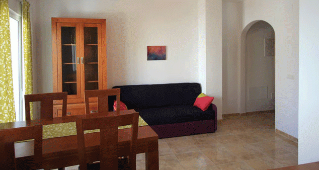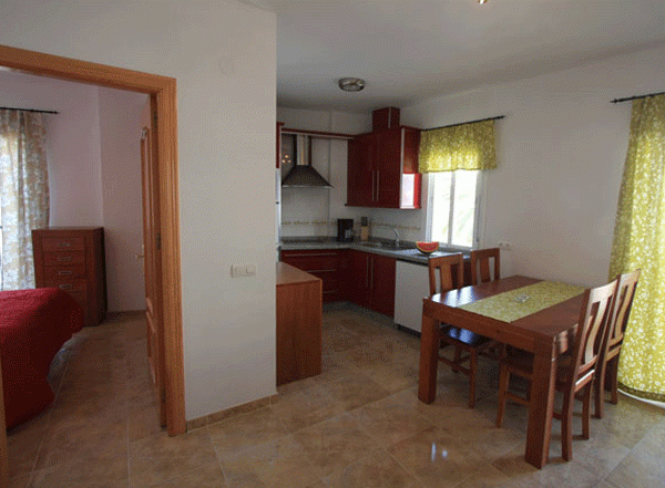 Het appartement: zitgedeelte, complete keuken, slaapkamer met 2 persoonsbed en badkamer met douche. (30 m2)